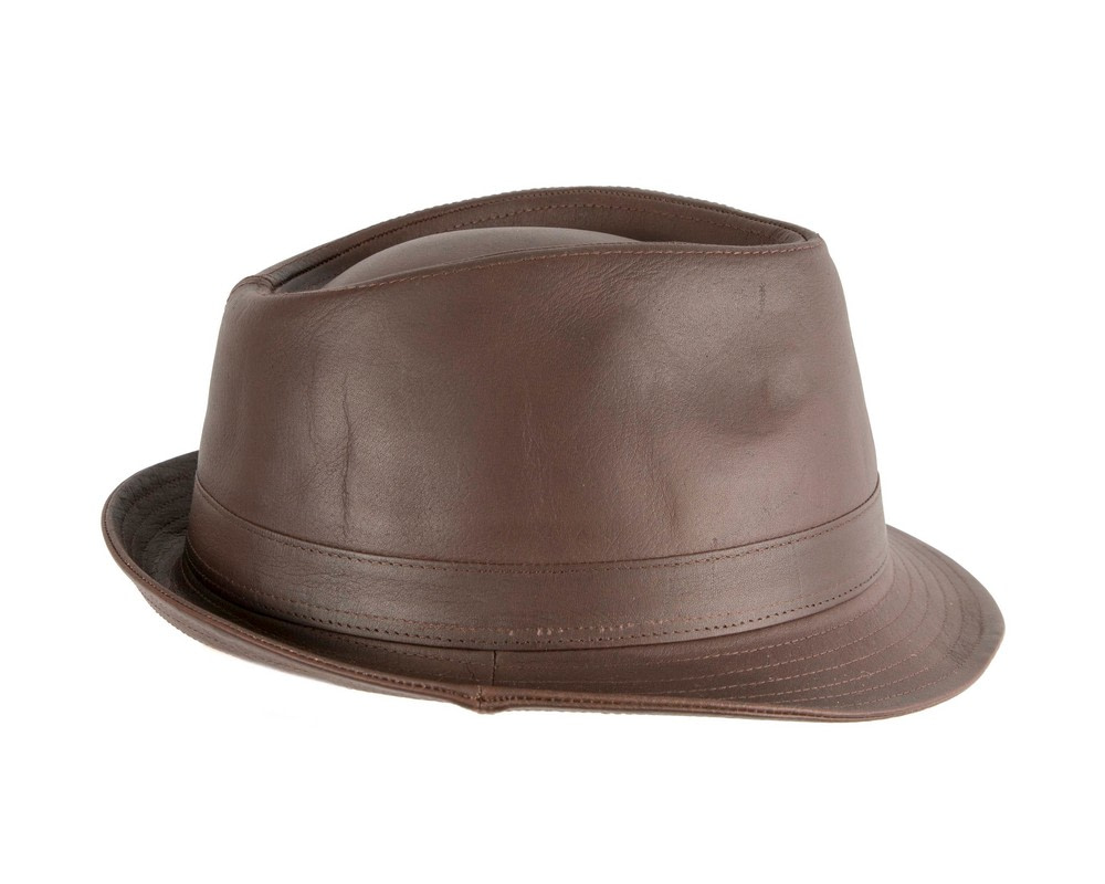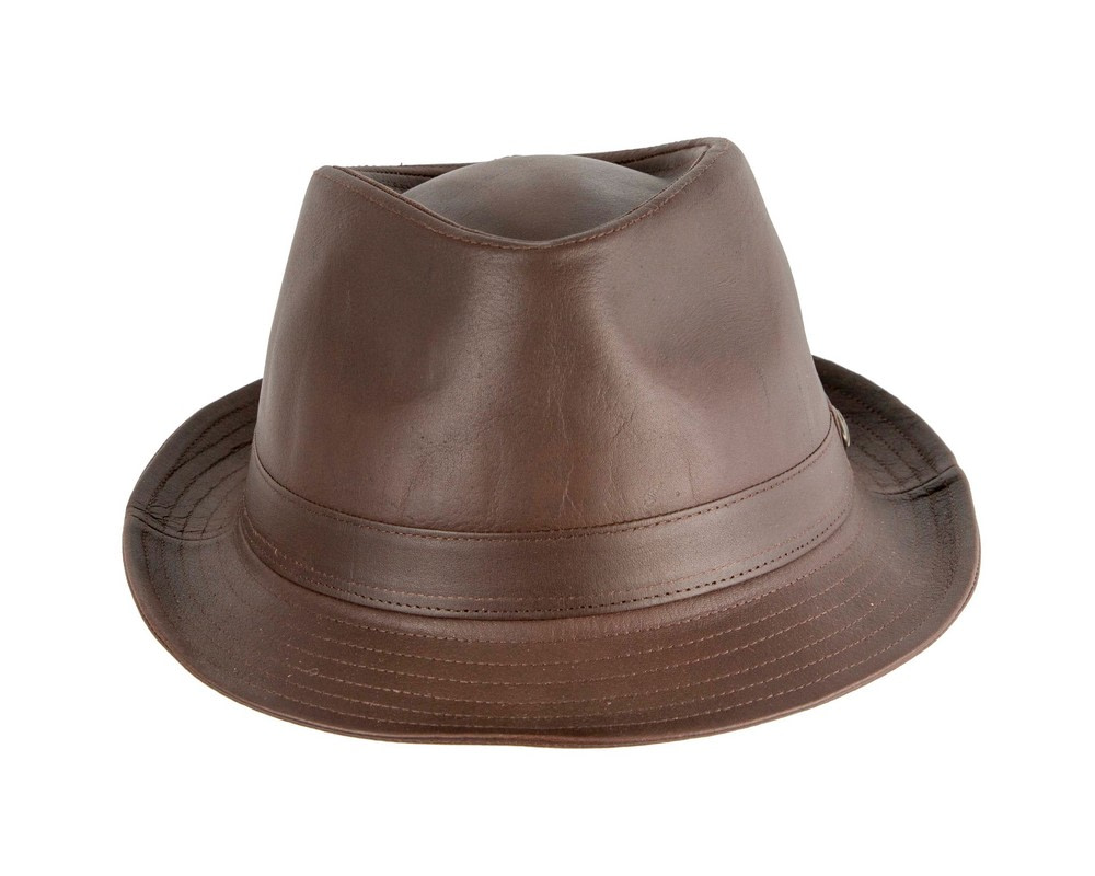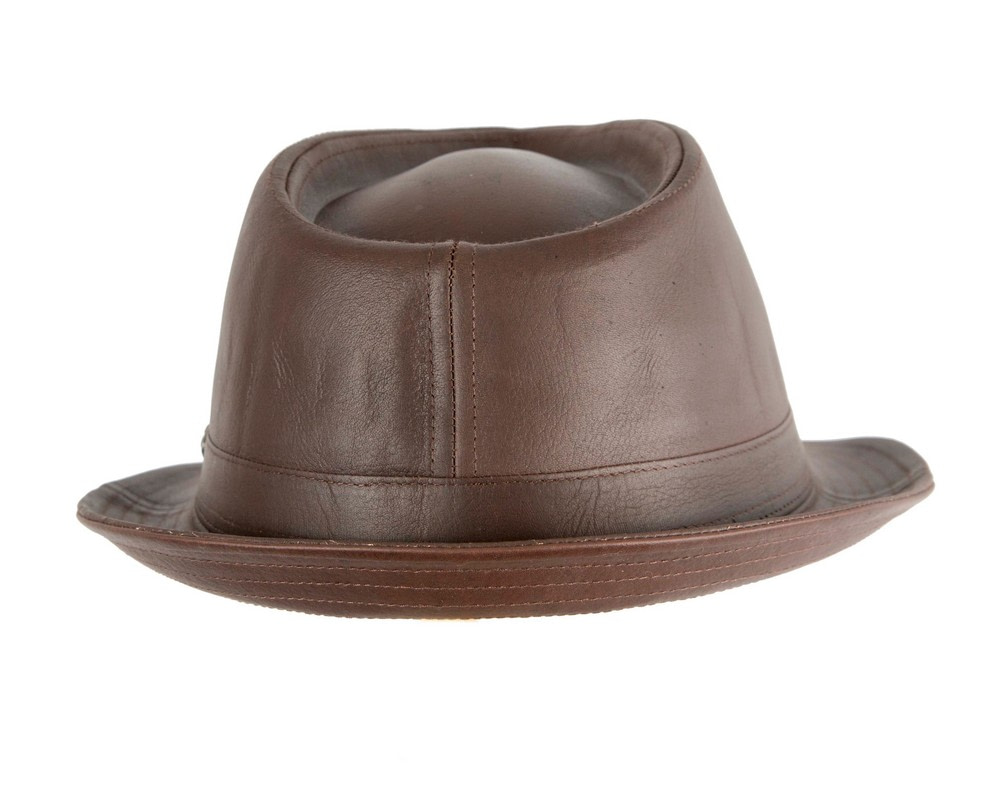 Brown Kangaroo Leather Trilby Short Brim Fedora Hat