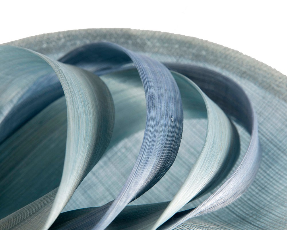 Stylish light blue fascinator decorated with silk abaca loops. Perfect choice for your next racing outfit.