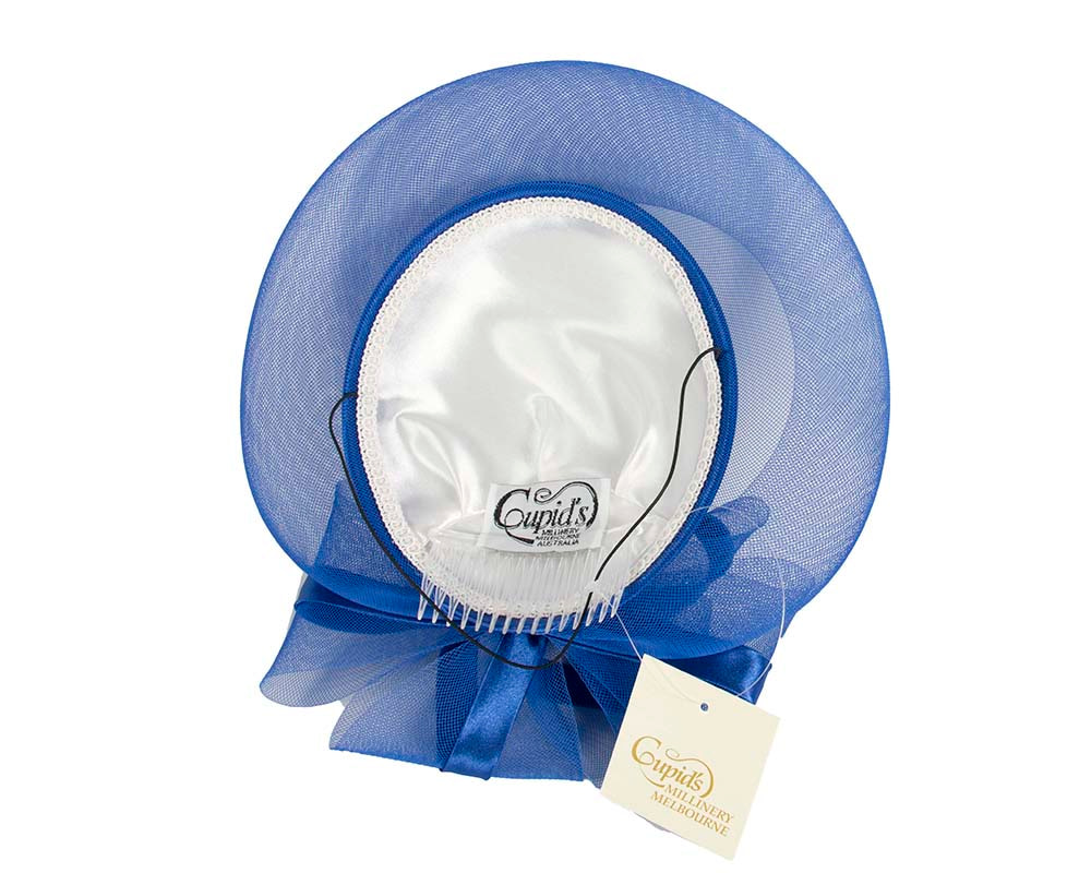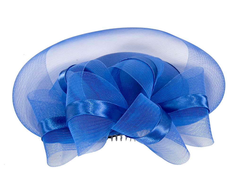 This fancy royal blue headpiece from our beautiful range of cocktail hats, headpieces and special occasion hats is custom made from luxurious fabric with crinoline with comb for comfortable wearing.